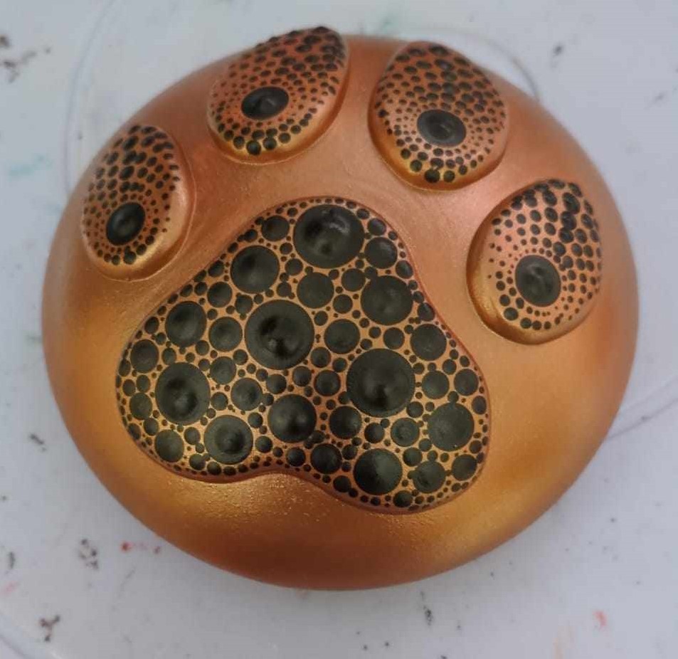 Den fine hundepote kunst sten er 9 cm i diameter og 4 cm tyk.